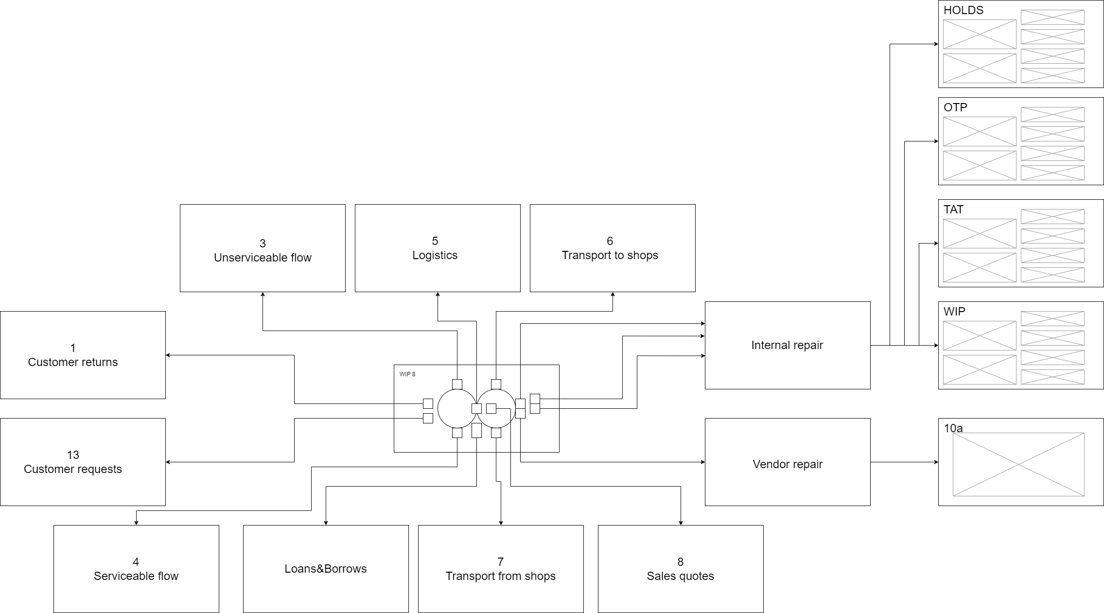 With how the dashboard was designed most pages showed one "kind" of metric. So internal repair has their "WIP", "TAT", and "OTP" pages. But maybe you need to compare the WIP to the TAT to see the whole picture.