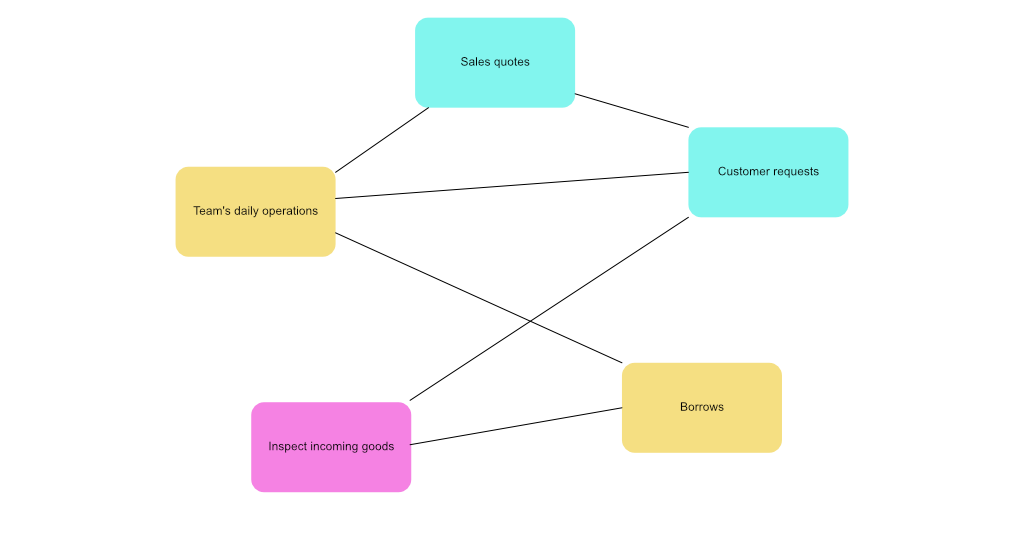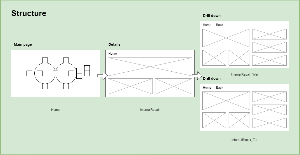 Initially I seemed like a good idea to structure the dashboard as a large hub and spoke as users only need information about their department right? What I found out is that certain information is department agnostic. For instance, both the Internal Repair department and Logistics can both be interested in Borrows, as they can both contribute to lower these.